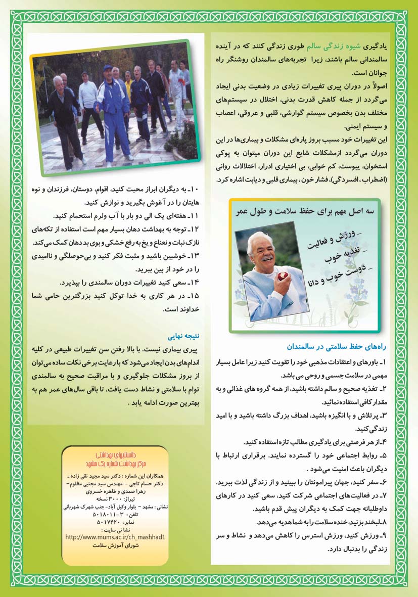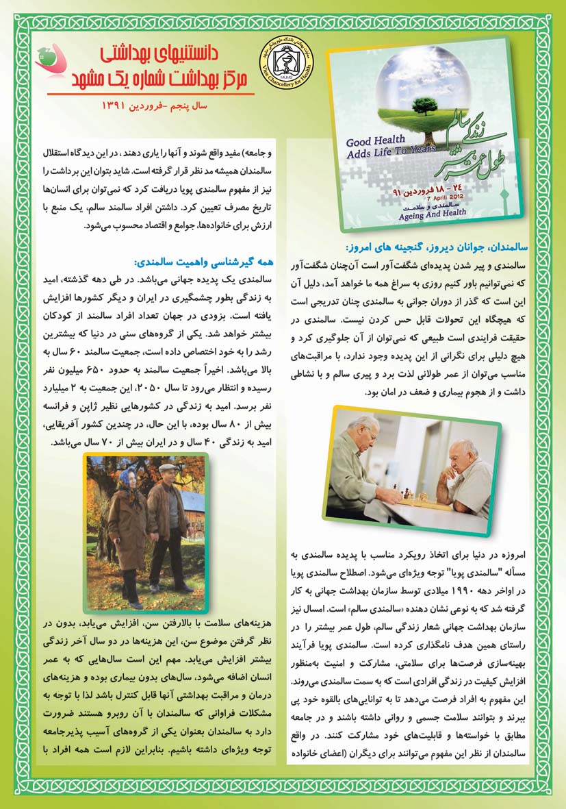 جوانی جمعیت ، سلامت خانواده و مدارس 18 بهمن 1391 بازدید: 2869 امتیاز: ( 0 Rating ) مطالب آموزشی واحد سلامت سالمندان امتیاز کاربران لطفا رای دهید رای 1 رای 2 رای 3 رای 4 رای 5 بازگشت مطالب آموزشی واحد سلامت سالمندان راه هاي شاد زيستن سالمندان بيماريهاي شايع سالمندان راهنماي سلامت سالمندان ساير مطالب مرتبط با سلامت سالمندان انسان سالم محور توسعه پايدار تغذیه سالم در دوران سالمندی فعالیت بدنی در دوران سالمندی سلامت روان در دوران سالمندی کتاب سالمندی و سلامتی دانستنيهاي سالمندان صفحه یک صفحه دو