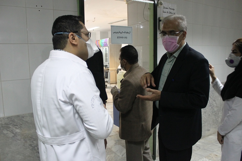 معاون بهداشت دانشگاه علوم پزشکی مشهد با حضور در آزمایشگاه تشخیص مولکولی کووید 19 مستقر در بیمارستان شریعتی از روند ارائه خدمات آزمایشگاهی در راستای غربالگری کرونا بازدید نمود.
