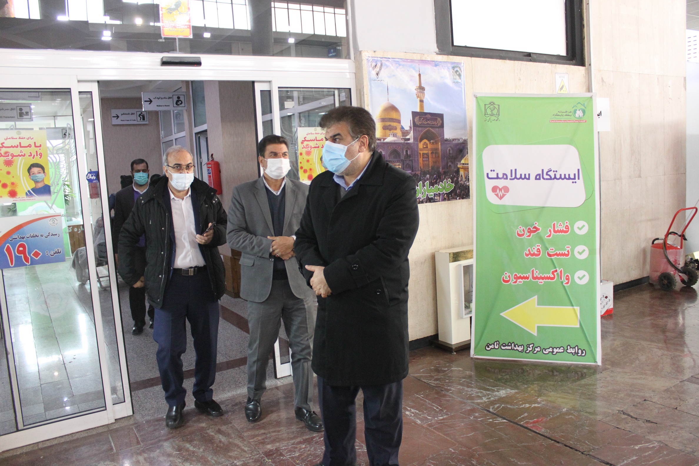 معاون اجرایی معاونت بهداشت با توجه به شیوع کرونا در کشور و ورود جمعی از زائران علی ابن موسی الرضا(ع) و مسافران نوروزی به شهر مقدس مشهد و همچنین وضعیت زرد کرونایی مشهد ، از ایستگاه های سلامت نوروزی مستقر در محور قوچان به مشهد ، ایستگاه راه آهن مشهد و پایانه مسافربری امام رضا (ع) بازدید نمود.