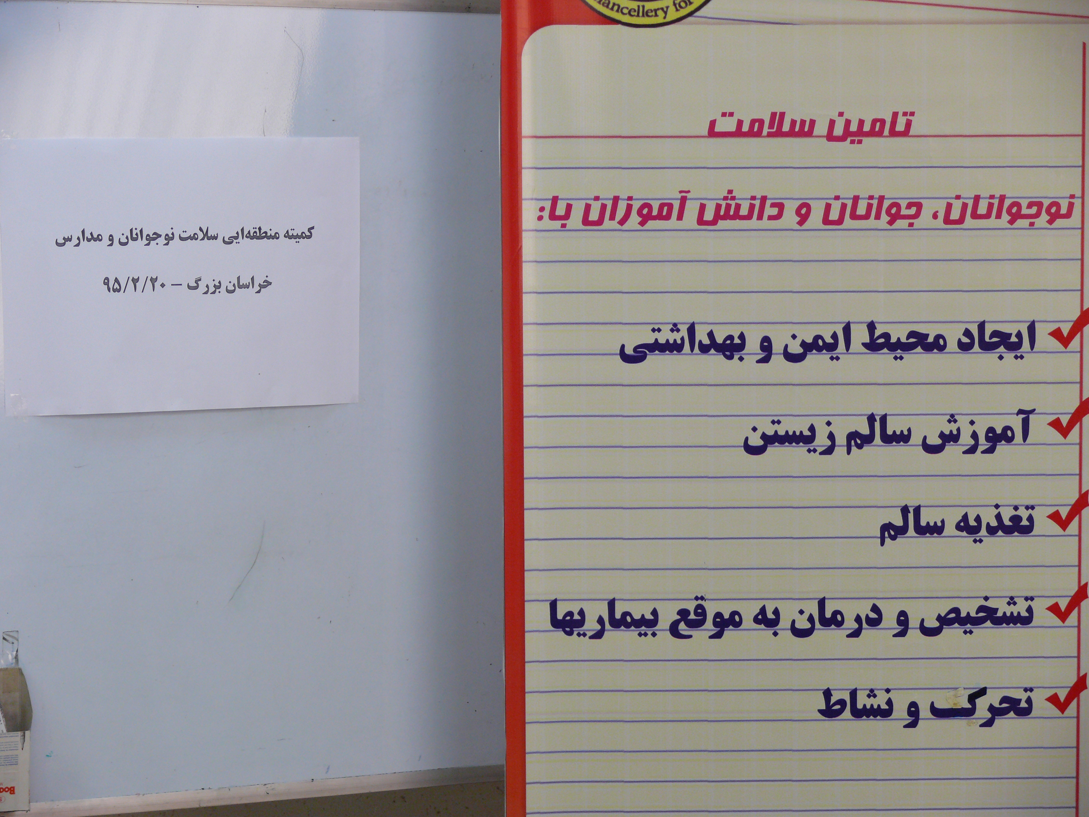 اولین نشست کمیته منطقه هفت کشوری سلامت نوجوانان ومدارس در سال جاری به ریاست معاونت بهداشت دانشگاه علوم پزشکی مشهد در محل سالن شهید قاسم پور مرکز بهداشت استان برگزارشد.