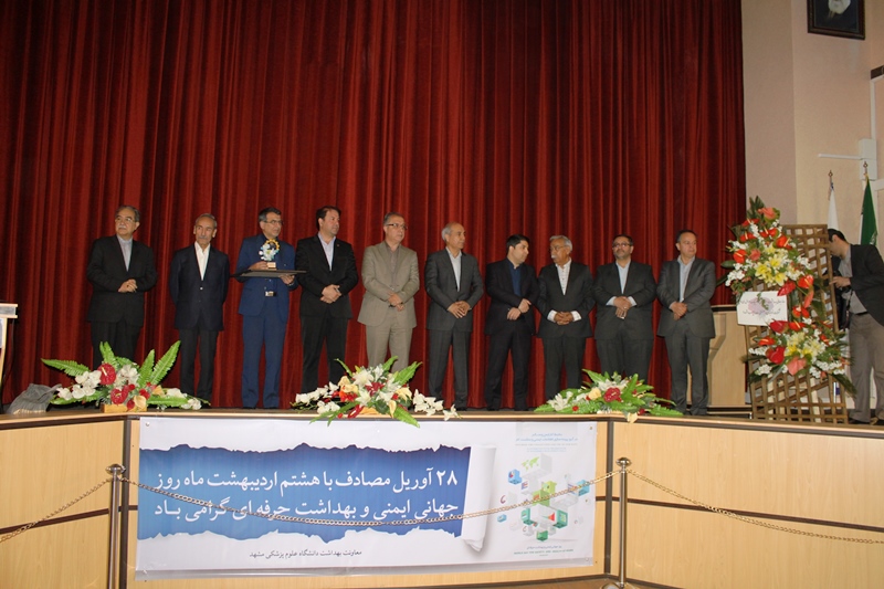 شایان ذکر است در همایش روز جهانی ایمنی و بهداشت حرفه ای که به همت معاونت بهداشت دانشگاه علوم پزشکی مشهد و با حضور معاون بهداشت دانشگاه، رئیس سازمان صنعت، معدن و تجارت استان، مدیر کل تعاون، کار و رفاه اجتماعی استان، نایب رئیس انجمن مدیران صنایع، رئیس خانه صنعت و معدن، رئیس کانون انجمن های صنعتی کارفرمایی، مدیر عامل شرکت شهرکهای صنعتی و جمعی از کارشناسان بهداشت حرفه ای دانشگاه و بخش خصوصی در محل تالار رازی دانشکده بهداشت برگزار گردید از 14 شرکت و صنایع برتر در زمینه ایمنی و بهداشت حرفه ای، 33 نفر از کارشناسان بهداشت حرفه ای بخش دولتی و خصوصی، پزشکان و متخصصین طب کار و بهداشتکاران و بهگران صنایع تقدیر به عمل آمد.
