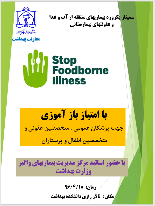 سمینار یک روزه بیماریهای منتقله از آب و غذا و عفونتهای بیمارستانی در دانشگاه علوم پزشکی مشهد برگزار می شود.