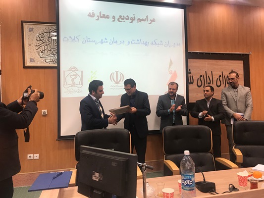 مراسم تودیع و معارفه مدیر شبکه بهداشت ودرمان شهرستان کلات با حضور معاون بهداشت دانشگاه برگزار گردید به گزارش روابط عمومی معاونت بهداشت دانشگاه در این مراسم که در فرمانداری شهرستان کلات با حضور فرماندار و اعضای شورای اداری شهرستان برگزار شد از تلاش ها و زحمات دکتر احمدرضا جوان در مدت تصدی مدیریت شبکه بهداشت ودرمان شهرستان تقدیر گردید و دکتر کاظم قلی پور با ابلاغ رئیس دانشگاه علوم پزشکی مشهد بعنوان مدیر شبکه بهداشت ودرمان شهرستان کلات منصوب گردید.