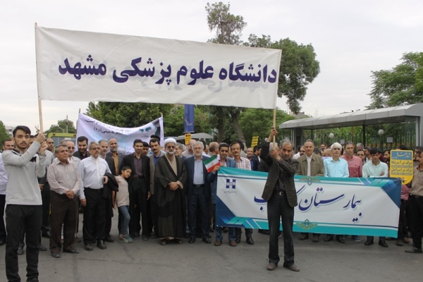همکاران حوزه بهداشت دوشادوش سایر پرسنل دانشگاه مشهد و سایر اقشار مردم با حضور در راهپیمایی روز قدس بار دیگر حمایت خود را از مردم مظلوم فلسطین اعلام نمودند.