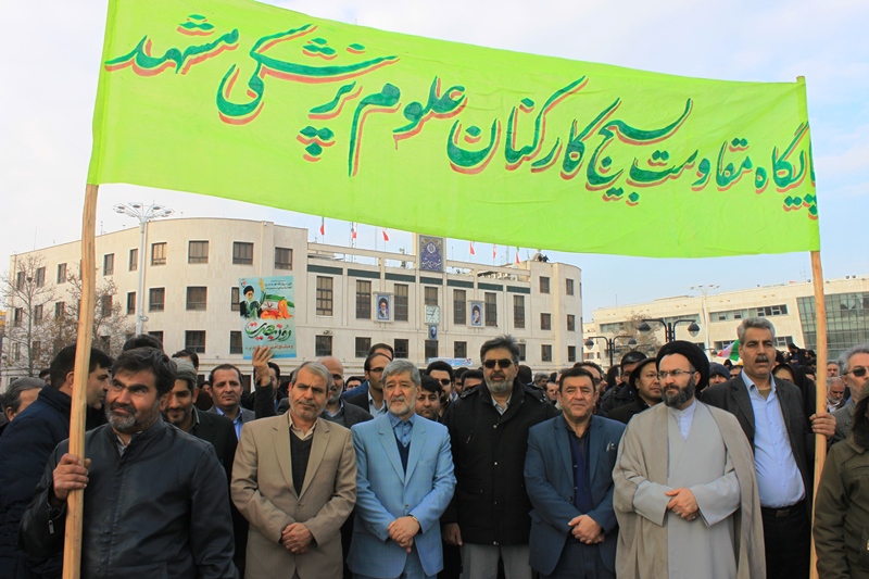 همکاران معاونت بهداشت دانشگاه علوم پزشکی مشهد با حضور در راهپیمایی حماسه ۹ دی "روز بصیرت و میثاق امت با ولایت" پشتیبانی همه جانبه خود را از ارزشهای انقلاب اسلامی اعلام کردند.