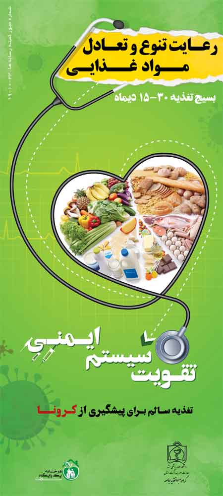 یازدهمین بسیج ملی تغذیه با شعار "تغذیه سالم برای پیشگیری از کرونا " از 15 تا 30 دی ماه در مناطق زیر پوشش دانشگاه علوم پزشکی مشهد اجرا می شود.