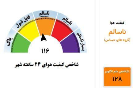 بر اساس اعلام واحد بهداشت هوای معاونت بهداشت دانشگاه علوم پزشکي مشهد، کیفیت هوای شهر مشهد هم اکنون با عدد128 در شرایط ناسالم برای گروه های حساس می باشد.